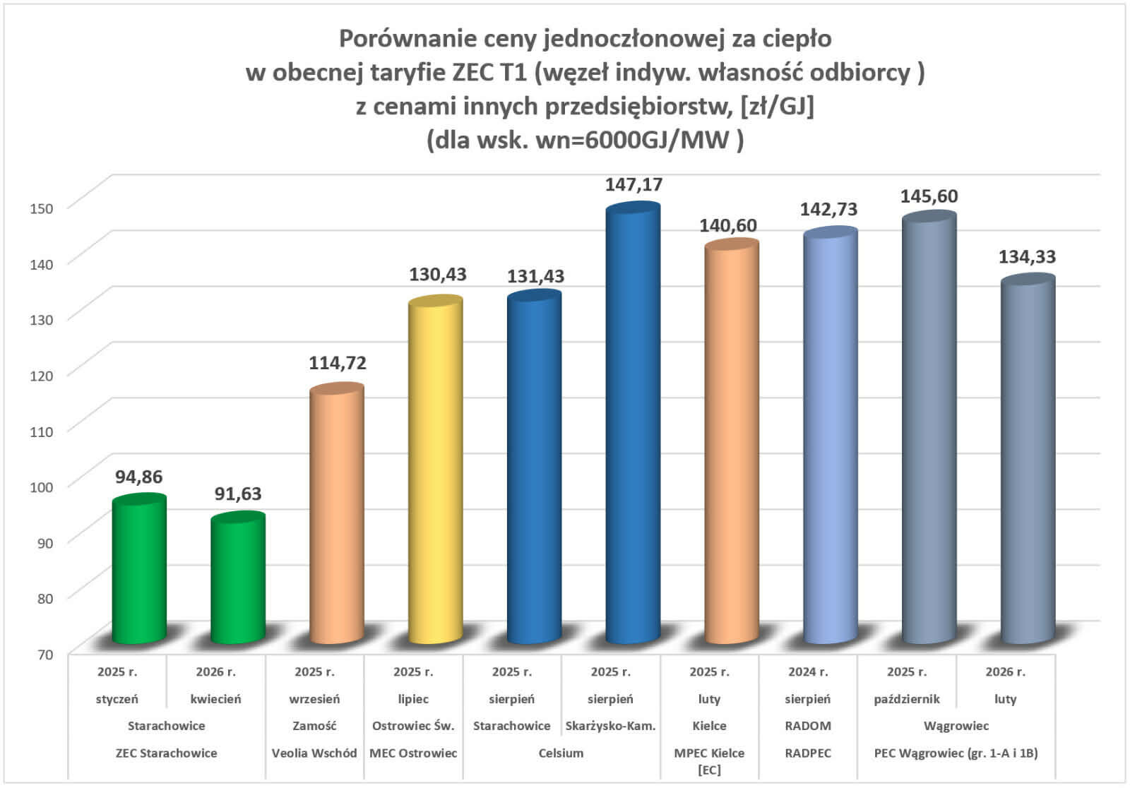 - Mamy najtańsze ciepło w regionie a będzie jeszcze taniej. ZEC w Starachowicach od wielu lat jest producentem najtańszego ciepła w regionie. Od 1 kwietnia 2026 roku obowiązywać będzie nowa taryfa dla ciepła i będzie ona niższa od obecnie obowiązującej o 1,78 %. Biorąc pod uwagę inflację za rok 2025 na poziomie 3,6 % można pokusić się o stwierdzenie, że faktyczny spadek ceny GJ jest na poziomie 5,38 % - informuje Prezydent Miasta Starachowice Marek Materek.