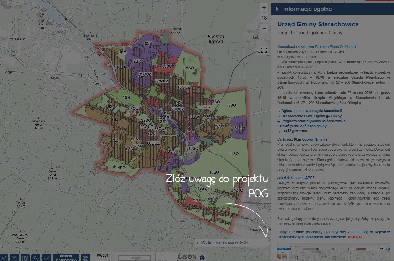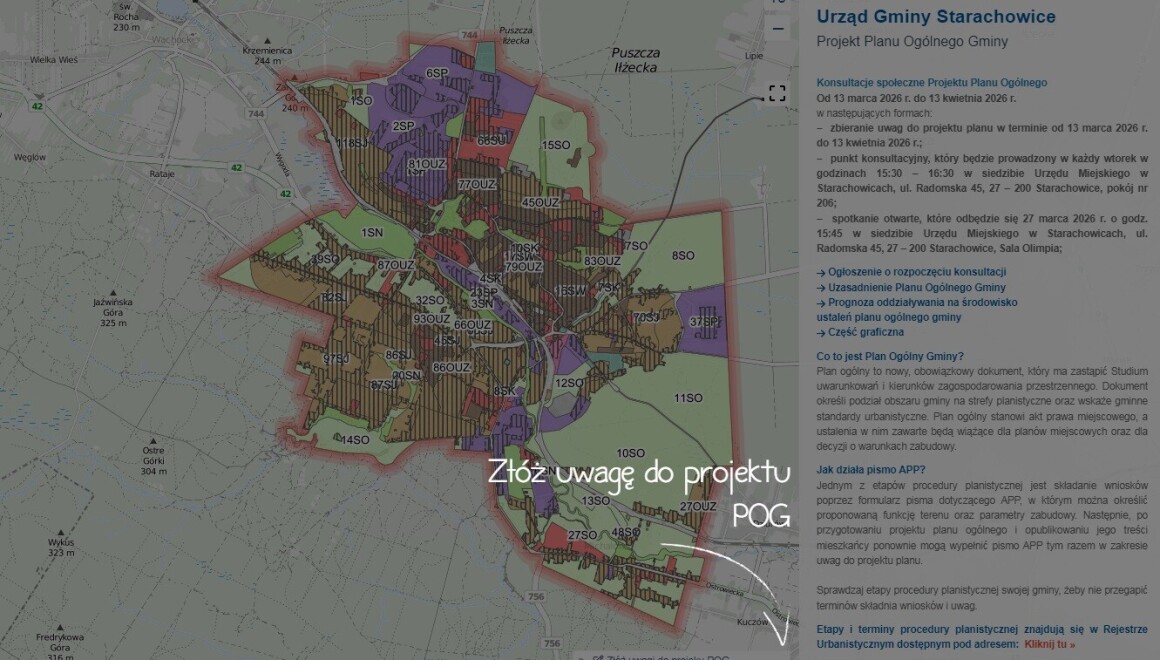 Uwagi mogą być wnoszone do Prezydenta Miasta Starachowice od 13 marca 2026 r. do 13 kwietnia 2026 r.: